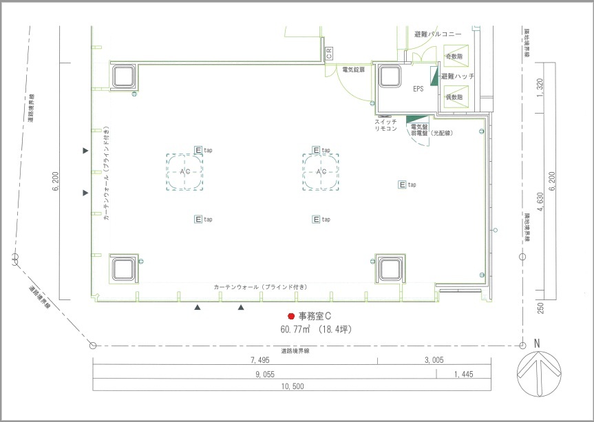 | 備考 | ・カードキー対応(8枚貸与・・・追加1枚3,000円) ・家賃保証会社及び少額短期テナント保険加入義務有。 ・警備保障、セキュリティ重視のオフィスビル。AED設置予定。 ・水道料金月額定額制:2,500円/月 |