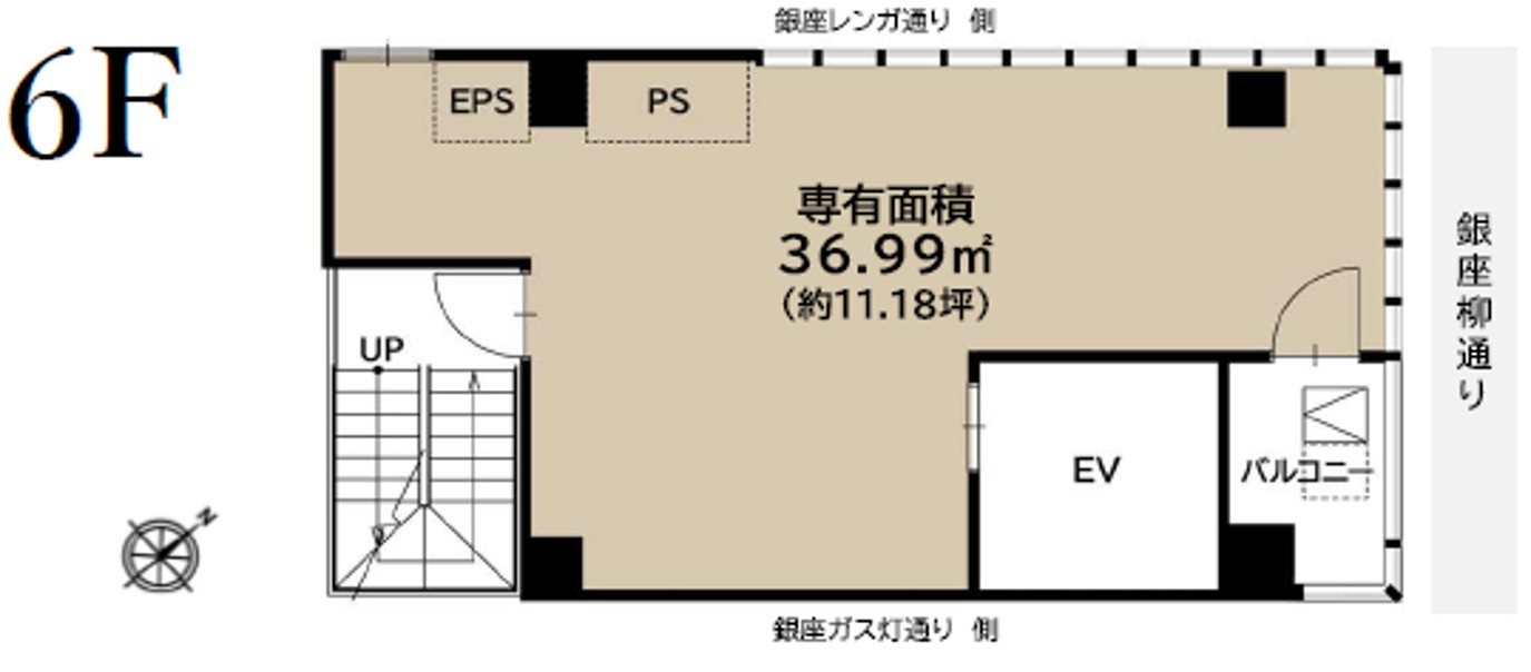 【サービス店舗】銀座1丁目駅から徒歩1分 銀座柳通りに接した新築商業ビル 6階11坪
