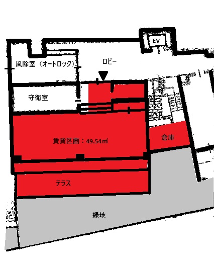 マンション1階 事務所仕様 テラス付き 店舗相談可