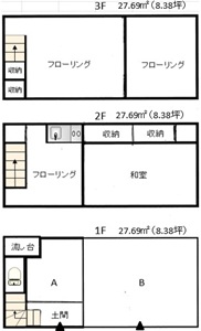 | 建物構造 / 建物階数 | 木造(W造)/ 地上3階 地下 -階 |